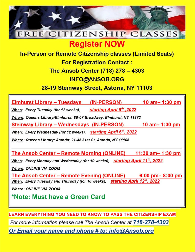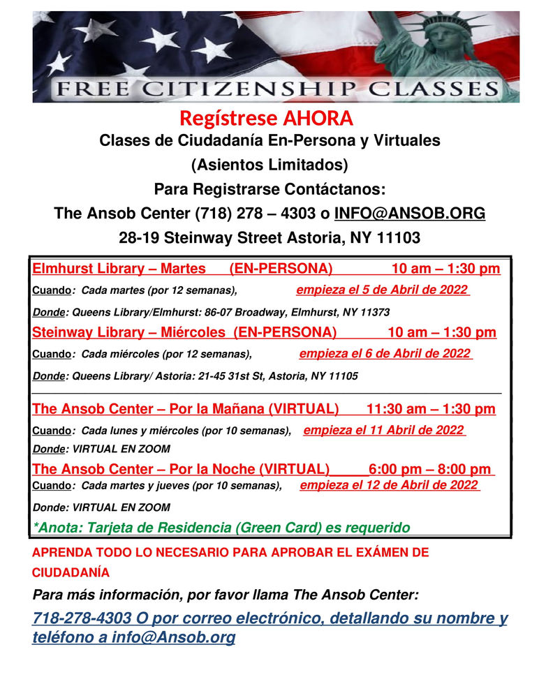 Free Citizenship Classes Spanish Register Now 718 278 4303